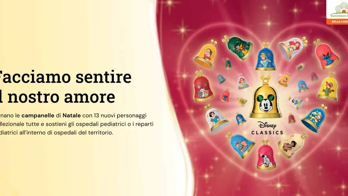 I clienti titolari di Carta Insieme e Carta Insieme Più Conad Card, per ogni 15 euro di spesa, aggiungendo 1,90 euro, doneranno 50 centesimi ad Ageop Ricerca e riceveranno una delle campanelle Disney, perfette per decorare la casa, impreziosire l’albero di Natale o aggiungere un tocco speciale alla tavola. Si tratta di una collezione esclusiva di 13 personaggi Disney tra i più amati e conosciuti, arricchita da una speciale campanella dorata di Topolino in edizione limitata.