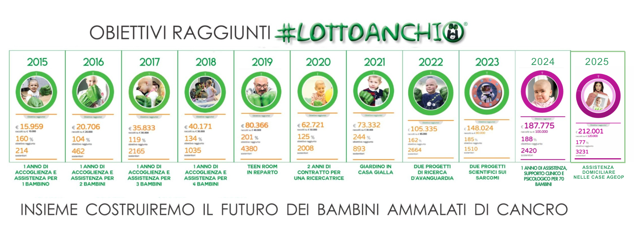 Era il 2015 e da allora Ageop Ricerca ha realizzato ogni anno una nuova edizione di #LOTTOANCHIO per sensibilizzare e dare voce al fragile mondo dell'Oncologia Pediatrica e realizzare un progetto concreto.